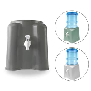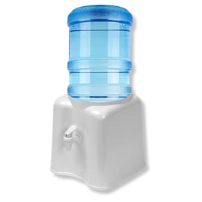 Suporte para galão de água com torneira de haste para saída de água. Feito de plástico resistente e fácil de higienizar. Ideal para galões de 20 litros. Pode ser adicionado a mesas, bancadas e pias.Água gelada