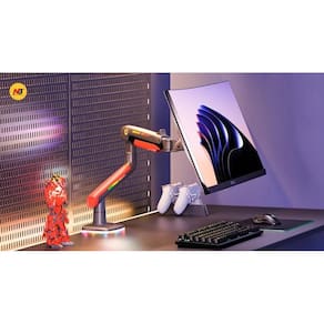O suporte gamer monitor north bayou l50 é a escolha ideal para quem busca ergonomia e estilo em seu setup. Com um design articulado e iluminação led rgb, ele suporta monitores de 32 a 60 polegadas, transformando seu espaço em um ambiente gamer moderno e atraente.