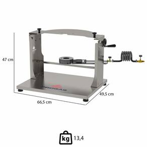 INFORMAÇÕES DO SUPORTE - Estrutura total em aço inox escovado; - Manuseio seguro; - Giro para descarga com travamento automático em 2 estágios; - Desmontável de fácil montagem e limpeza; - Queimador 120mm chama dupla alta pressão com mangueira e registros; - Pés de borracha com regulagem de altura; - Tampa traseira da caçarola acoplada na estrutura, que reduz tempo de cozimento.