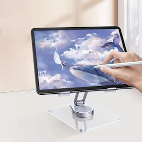 O suporte giratório é a escolha perfeita para quem busca funcionalidade e elegância. Com sua cor prateada, adapta-se perfeitamente a qualquer ambiente, seja em casa ou no escritório. A estrutura de alumínio oferece durabilidade e uma base antiderrapante que assegura estabilidade em qualquer superfície. Projetado para tablets de 7 a 12 polegadas, este suporte suporta até 2 kg e permite ajustes flexíveis de ângulo até 90 e rotação completa de 360, garantindo a visualização ideal em qualquer situação. Além disso, sua montagem e desmontagem são incrivelmente simples, o que o torna perfeito para uso em diferentes locais. O modelo é ideal para quem precisa de um suporte de mesa confiável e versátil para o seu tablet. Homologação Anatel: 136132205567