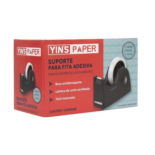 Suporte Grande Para Fita Adesiva - Yin's Paper Ideal para uso doméstico ou em escritório, o Suporte para Fita Adesiva possui base antiderrapante que garante maior estabilidade durante o uso. Sua lâmina serrilhada ajuda na precisão e facilidade do corte na fita adesiva. Código: 081109 Dimensões aprox. da embalagem em cm: 11x8,8x16,5 Cor: Preto Peso liq. Aproximado do produto na embalagem: 1,143g. Referência do Modelo: YP7093 Conteúdo da Embalagem: 01 Suporte de fita adesiva (não incluso fita) Composição/material: Plástico. Garantia: 90 dias contra defeitos de fabricação pelo fabricante Imagens meramente ilustrativas. As cores e tonalidades podem variar. Uso - Escolar Escritório Cor Predominante - Preto Tipos de Fitas - Suporte para Fitas Ean: 7899806989298