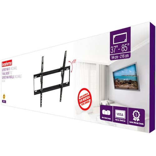 Uma excelente opção para instalar sua TV na parede com segurança. Suporta até 50 kg e é feito com aço carbono que proporciona maior durabilidade e segurança.