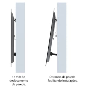 Por estar 1,7 cm da parede indicamos para os TVs onde a saída do cabeamento seja lateral e não central.