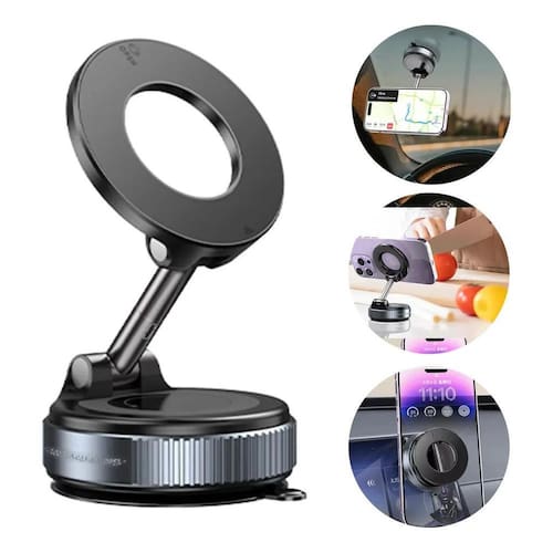 Mantenha seu celular sempre visível, seguro e na posição ideal com o Suporte Magnético 360 com Ventosa. Seja no carro, na mesa do escritório ou até na cozinha, este suporte dobrável e ajustável oferece rotação completa para facilitar seu dia a dia com estilo e praticidade.