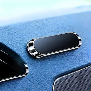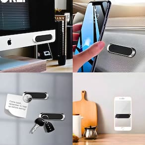 Fixação magnética com ímãs de alta potência, estrutura em liga de alumínio, ajuste de ângulo 360 graus, instalação adesiva em superfícies planas.