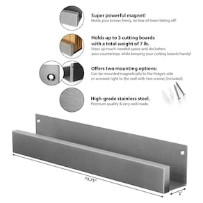- Sinta a confiança de ímãs ultra-fortes que prendem com segurança o suporte à sua geladeira e mantêm suas facas firmemente no lugar, enquanto suportam até 3 tábuas de corte (total de 3,2 kg)!