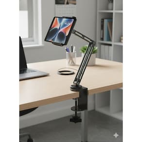 O grande diferencial do DeskArm SU-261 reside na sua ergonomia avançada e no sistema de fixação tipo morsa (clamp). Ao ser ancorado na borda da mesa ou bancada, ele libera o espaço útil que suportes convencionais ocupariam, permitindo uma organização superior da área de trabalho. O mecanismo de fixação é ajustável e possui proteções internas para não danificar o mobiliário, garantindo uma ancoragem sólida e livre de vibrações. Esta estabilidade é fundamental para quem realiza gravações de vídeo "overhead" (visto de cima), lives ou participa de reuniões virtuais, onde a trepidação da imagem pode comprometer a qualidade da transmissão profissional.