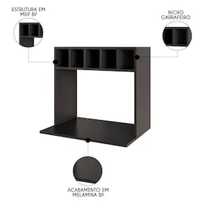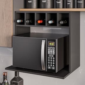 Precisa de um suporte para micro-ondas, mas também de uma adega? Que tal ter os dois juntos com o Suporte Micro-ondas Forno Armário Aéreo com Adega 60cm Lótus M24 Preto, da Mpozenato?