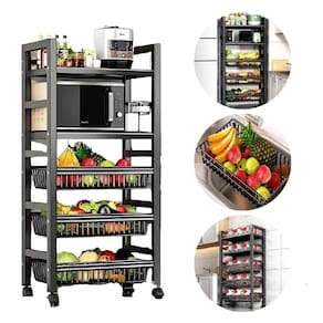 1 Fruteira Organizador Multiuso com 3 Cestos Aramados e 2 Prateleiras