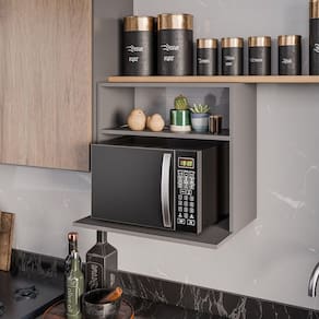 Você irá Receber: 01 Suporte para Microondas com Nicho Porta Tempero Entregue em: 01 Volume