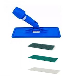 Suporte Limpa Tudo / Minilock - Acompanha 3 fibras Suportes para utilização de fibras abrasivas de limpeza. Com junção articulada, pode ser utilizado em pisos, paredes e diversas superfícies. Quando utilizado com cabo, alcança áreas em alturas de até 9 metros cabos a parte não possui no kit e previne acidentes com andaimes e escadas permitem limpar qualquer tipo de superfície com facilidade e eficiência em função da articulação no suporte. Produzidos em 5 cores, podem ser identificadas por área de utilização evitando a transferência de contaminações entre ambientes. Indicados cabos de 22 mm. Especificações Técnicas Marca: Moppita Modelo: SB71022 Cor: Azul Utilização: Pode ser instaladas em áreas externas, internas e banheiro, paredes, vidros, Pisos: Limpezas dos Rejuntes dos pisos, como cerâmica, azulejos e etc... Função: Acessório fixador de buchas Material: Plástico Injetado PP Não acompanha o cabo Dimensão: 22cm x 9cm Acompanha 3 fibras/buchas 1 uma Bucha de Fibra Para Limpeza Leve 1 uma Bucha de Fibra Para Limpeza Geral 1 uma Bucha de Fibra Para Limpeza Pesada Marca: Moppita
