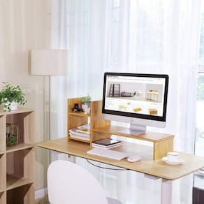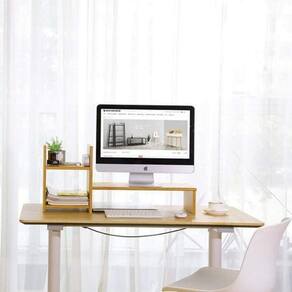 Suporte monitor e tv base apoio mesinha em madeira maciça