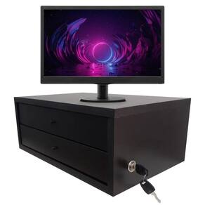 Ideal para elevar o posicionamento de seu monitor garantindo assim uma melhor postura e evitando dores na coluna e cansaço no final do dia.Além disso, o suporte possui 2 gavetas e também pode ser trancado com chave para maior segurança de seus pertences, bem como para não perder espaço e ainda ajudar na organização de sua mesa.Observação Importante: Tranca as duas gavetas, chave localizada na lateral do suporte.Organize sua mesa de trabalho com praticidadeÚtil e versátil , é extremamente bem acabada, resultando estilo para sua decoração e um ótimo custo benefício. Temos certeza do seu contentamento e satisfação.Confeccionado em chapa de MDF de 15 mm.Dimensões:Comprimento: 40,5 cmLargura: 26,5 cmAltura: 16,0 cmCada gaveta, dimensões internas:Comprimento: 31 cmLargura: 22 cmProfundidade/altura:3 cmCor PretoProduto acompanha 02 Chaves.