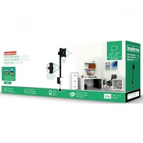 Suporte para monitor de 13 A 27 vesa 7575 até 100100 - brasforma bm811 O suporte de monitor bm811 é ideal fixação de monitores. Suporte versátil, possui gerenciador de cabos, permite ajuste de altura do monitor, não necessita furar a mesa - fixação por morsa, suporta até 8kg e sua pintura é eletrostática para maior durabilidade e resistência. Produzido em aço carbono e permite modo retrato ou paisagem.