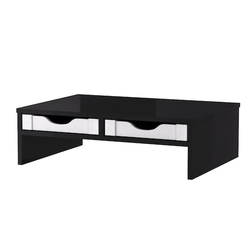 Suporte Monitor Preto 2 Gaveta Branca Horizontal
