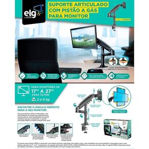 Independentemente da coluna, o braço com pistão à gas possui ajuste vertical de 26cm e atinge altura máxima de até 55cm. É compatível com monitores e TVs LCD, LED de 17"" a 27"" que permitam fixação conforme os padrões de fixação VESA 75x75 e VESA 100x100mm, presentes na traseira das telas.
