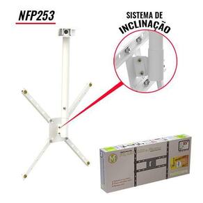 - Suporte tv para teto multiforma, com 2 braços extensores e giro de 360º, modelo mfp251, para todos os tipos de telas - Nosso sistema de hastes extensores possibilitam o ajuste perfeito à furação vesa do gabinete da sua tv. Fácil de montar e instalar. Altura regulável. - Compatibilidade: tv's led, lcd, plasma, 3d e smart tv de 10 até 65 - Furação (vesa=mm): 400 x 400; vesa 210; 200x200; 100x100 ou 75x75 - Fixação da tv: 04 pontos, acompanham parafusos m4; m6 e m8 - Movimento: giro horizontal de até 360º - Inclinação: frontal de 0º ou 15º - Material : aço carbono e pintura eletrostática com aplicação de fosfato (maior durabilidade) - Cor: preto - Carga máxima: 35 k - Dimensões do produto montado: 43 x 77 cm - Distância do teto: (max/min): 57 a 80 cm - Garantia : 5 anos, conforme normas do fabricante - Observações: Verifique se a superfície de instalação apresenta resistência suficiente para uma instalação segura; Fique atento a carga máxima indicada para o suporte; Aconselhamos que a instalação seja realizada por um profissional da área; Verifique se a furação de sua tv é compatível com o suporte - Itens inclusos: 01 suporte 04 braços extensores conjunto de parafusos manual impresso com instruções de montagem e garantia