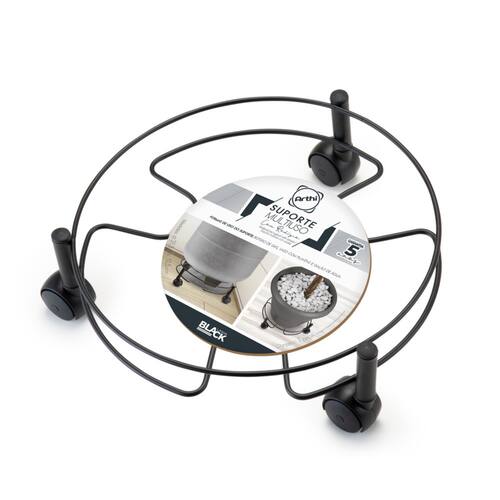 Porta Botijão Arthi Black - C/ Rodízios e Design Slim O Porta Botijão Arthi, linha Black, é a solução ideal para facilitar a movimentação e proteger o piso sob o botijão de gás ou outros objetos pesados. Seu design funcional inclui rodízios para mobilidade total e um acabamento moderno na cor preta. Características Físicas e Funcionais: Mobilidade Total: Equipado com rodízios, permite que o botijão (ou vasos grandes, baldes e outros objetos) seja movido e reposicionado facilmente, o que facilita a limpeza do piso. Proteção de Piso: Eleva o botijão do chão, evitando ferrugem e marcas que o contato direto pode causar no piso ou porcelanato. Design Discreto: Acabamento na cor preta (Black) sobre Aço Carbono, que confere um visual contemporâneo (Linha Black) e discreto. Uso Multiuso: Embora ideal para botijões, serve como um suporte especial para vasos de plantas, galões de água ou outros objetos pesados que precisem ser movidos ocasionalmente. Durabilidade: Fabricado em Aço Carbono, um material robusto que resiste ao peso. Marca: Arthi (Ref. 2557). Especificações Técnicas: Funcionalidade: Suporte com rodízios para botijão de gás (e uso multiuso). Cor: Preto (Black). Dimensões: Diâmetro Ø31,5 X Altura 10,5 cm. Material: Aço Carbono.