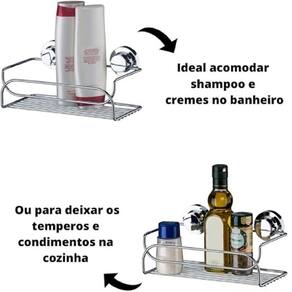 Para acomodar os shampoos e cremes no banheiro, ou para deixar os temperos e condimentos sempre à mão na cozinha. O Suporte Multiuso vai te ajudar na organização e deixar sua casa mais funcional. Acabamento liso e fosco. A pintura a pó aplicada na peça garante uma excelente cobertura protetiva contra corrosão e alta resistência ao impacto.