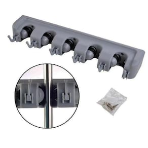 Caracteristicas: Cor: Cinza Composição: Plástico Conteúdo: 5 Ganchos Espaço para por vassoura 6 Prendedores para roupas Itens Inclusos: Buchas e parafusos Quantidade: 1un Validade: Indeterminada Ean: 3435091078633