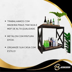 Este nicho de metalon com prateleiras de MDF preto é uma opção elegante e funcional para diversos tipos de ambientes e usos decorativos.