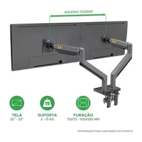 Suporte G-35 duplo para TV/Monitor de 22 a 32 polegada. A North Bayou é uma empresa especializada na fabricação de suportes para todos os tipos de TV e monitores. Sua grande capacidade no desenvolvimento e design de produtos funcionais, focada na segurança, qualidade e estética a posicionam mundialmente. Seus produtos contam com certificações internacionais da indústria com isto garante a sua qualidade e a durabilidade.