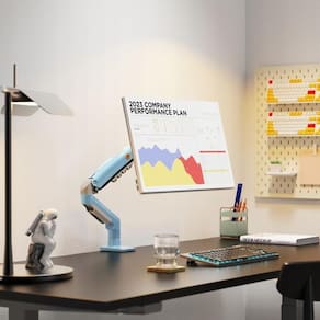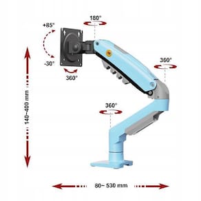 O F80-XM Azul Claro North Bayou é um suporte para monitor com movimento total para instalação na mesa. Ele é projetado e construído com o conceito de interface ecológica para melhor visualização e experiência do usuário. Com seu design de flexibilidade em braços retráteis e extensíveis, economiza espaço em uma área limitada.