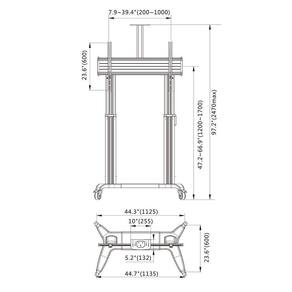 Caber a maioria de 75 -110 painel plano led, tv lcd. Cabe a maioria de 75 -110 lcd ou led tvs de painel plano. Tw100 é parte de inovador display móvel projetado incluir uma base de aço sólido de alta elasticidade, e uma dupla resistente anodizado colunas de liga de alumínio para suportar uma carga total de 300 libras 134 kg . Com 4 rodízios de freio resistentes instalados, você não tem problemas para manobrar esta peça de equipamento para todos os cantos em seus locais de trabalho ou locais. O que é mais, com adicionado 110 ou 240 ac auto swap alto torque motorizado cilindro sistema integrado com um 24 tensões dc atuador linear, dado o curso de 500mm distância de viagem permitem que você levante a tela até 1.8 metros de altura sem assédio, tão fácil quanto uma criança pode fazer. Tw100 é um bloco modular projetado encurtar seu tempo de montagem e desmontagem e menos problemático durante os processos. Tw100 motorizado lift-screen carrinho é altamente mobilidade e economia de espaço. Vem na cor preta ou branca. Carrinho móvel resistente motorizado do elevador-tela Troca automática 110 ou 240 adaptador av Alto torque 24 tensões dc atuador linear com deslocamento de viagem de 500mm Carga máxima 300 libras 136.4 kg . Cabe a maioria dos 60 tvs a 100 tvs tvs ou smart-boards 4x 4 castrodízios giratórios resistentes do freio para a manobra sem esforço Conformidade vesa 200x200 a 1000x600. Ajuste mais grandes telas no maket atual Instalador e eco-friendly. Altamente mobilidade e economia de espaço. Ean: 6943223111648