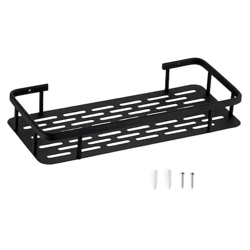 Cor: Preto Material: Alumínio resistente Suporta aproximadamente 1,2kg, ideal para produtos de higiene Resistente à ferrugem, perfeito para banheiros Fácil instalação com kit de buchas e parafusos inclusos Organização prática, mantendo tudo em ordem