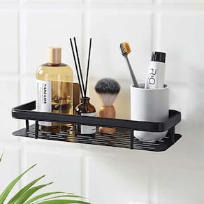 Cor: Preto Material: Alumínio resistente Suporta aproximadamente 1,2kg, ideal para produtos de higiene Resistente à ferrugem, perfeito para banheiros Fácil instalação com kit de buchas e parafusos inclusos Organização prática, mantendo tudo em ordem