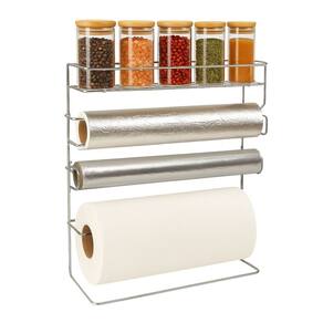 Organizador de Cozinha Cook 5 em 1 em Aço Cromado – Porta Rolos e Porta Temperos com Suporte de Parede e 5 Mini Potes Herméticos em Vidro Borossilicato e Tampa em Bambu 90ml!