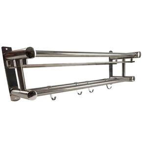 Organize a sua casa com esse organizador multifuncional, ele possui uma prateleira, barras de apoio e quatro ganchos, perfeito para colocar toalhas, panos de prato ou utensilios de cozinha.
