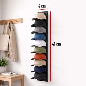 O Suporte Organizador de Bonés e Chapéus é a solução ideal para manter seus acessórios organizados e sempre à mão. Seu design em cascata permite visualizar toda a coleção com facilidade, além de preservar o formato dos bonés, evitando amassados.