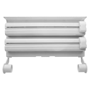 Este produto foi desenvolvido especialmente para quem gosta de simplicidade e praticidade, possui 3 funções, nas duas partes superiores há lâminas que podem ser utilizadas tanto para cortar plástico insufilm quanto papel alumínio, na parte de baixo há um suporte que pode ser utilizado para colocar o papel toalha. Design elegante e moderno: em branco, que combina com qualquer decoração. Funcionalidade 3 em 1: organiza papel toalha, papel alumínio e papel filme em um só lugar.