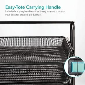 Características Principais: Três Bandejas Deslizantes: Equipado com três bandejas, oferece amplo espaço para classificar e acessar documentos e materiais diversos, facilitando a organização e a recuperação rápida. Material de Alta Qualidade: Fabricado em metal aramado, combina resistência e durabilidade com um design leve e prático, ideal para suportar o uso diário intenso. Design Moderno e Versátil: O acabamento em metal aramado proporciona um visual sofisticado que se adapta bem a diferentes estilos de decoração de escritório, mantendo seu ambiente elegante e funcional. Espaço de Armazenamento Eficiente: Com três bandejas, você pode facilmente separar e categorizar seus documentos, ajudando a reduzir a desordem e melhorar a produtividade.