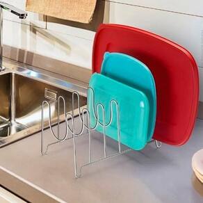 Ideal para organizar tampas de panelas, frigideiras, travessas e bandejas dentro do seu armário, ampliando a área útil. Além disso são feitos de aço cromado, agregando charme, beleza, qualidade e resistência.