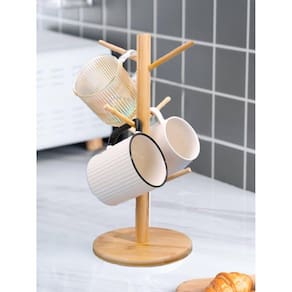 Organize suas xícaras e canecas com muito estilo com esse suporte ecológico de bambu, possui 6 ganchos e base reforçada com pés emborrachado que evitam que escorregue ou que cause riscos na sua bancada, mesa ou armários.