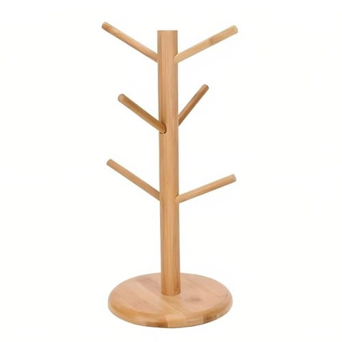 Organize suas xícaras e canecas com muito estilo com esse suporte ecológico de bambu, possui 6 ganchos e base reforçada com pés emborrachado que evitam que escorregue ou que cause riscos na sua bancada, mesa ou armários.