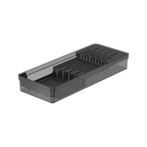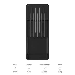 Suporte Organizador Gaveta Porta Facas Cozinha Divisória Ou Cor: Branco Porta facas de gaveta organizador Clear Ou despachamos em até 24h após o pedido qualidade altíssima A Linha Clear é a união entre transparência e organização que independente do ambiente, promove um design perfeito para organizar e aumentar o espaço das suas gavetas. O organizador de facas foi pensado para permitir diversas composições e proporcionar máximo aproveitamento de espaço nas gavetas, por isso, comporta 9 facas sendo 5 facas grandes e 4 facas pequenas, além de divisórias que preservam o fio das facas. Combine, encaixe e enxergue facilmente o conteúdo, mantendo tudo em ordem. Produzido em material resistente que proporciona alta transparência, fácil higienização e praticidade na hora de organizar. A linha clear é indispensável para auxiliar você na organização da sua casa. - Ficha técnica: Marca: Ou Linha: Clear Medidas: 5,6 x 15 x 37,5cm A x L x P Peso: 384g Material: plástico - Cuidados com o produto: Não utilizar materiais abrasivos, lavar com detergente neutro Imagens ilustrativas