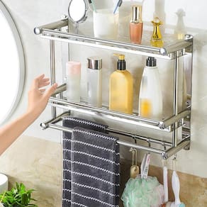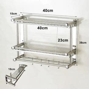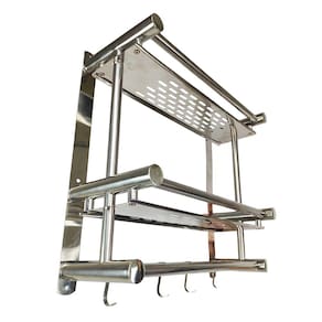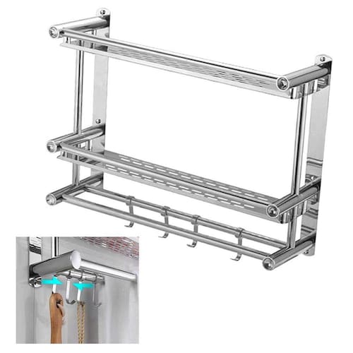Organize a sua casa com esse organizador multifuncional, ele possui duas prateleiras, quatro ganchos, perfeito para colocar toalhas, panos de prato ou utensilios de cozinha.