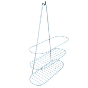 Material: Suporte em arame com pintura em epoxi. Dimensões: Altura:30cm Largura:8cm Comprimento:24cm Peso: 270g Altura entre Prateleiras: 7cm Cor: Branco Marca: Tubo Max