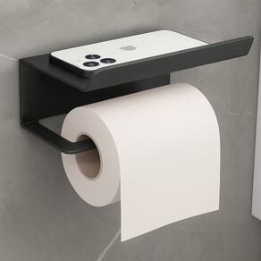Design 2 em 1: Uma prateleira superior ideal para apoiar seu celular, chaves, lenços umedecidos ou outros pequenos objetos. Nunca mais se preocupe em deixá-los cair. Material de Alta Qualidade: Feito em aço inoxidável de alta resistência com acabamento fosco, este suporte é robusto, durável e à prova de ferrugem, mantendo um visual elegante por muito tempo. Instalação Versátil: Você pode escolher como instalar! O suporte pode ser fixado com parafusos para maior segurança ou sem furos, usando a cola especial que acompanha o produto. Fácil de Limpar: O acabamento liso e a qualidade do material facilitam a limpeza e manutenção, garantindo que seu banheiro esteja sempre impecável.
