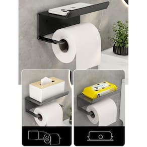 Coloque o Rolo: Encaixe o rolo de papel higiênico na barra inferior. Use a Prateleira: Apoie seu celular, chaves ou outros itens na prateleira superior.