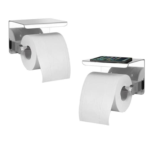O suporte do rolo higiênico, a parte superior do suporte do rolo higiênico pode apoiar seu celular, tablet, relógio, lenços umedecidos, óculos e outros pequenos objetos quando você estiver no banheiro, muito prático e conveniente.