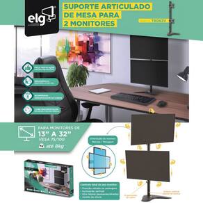 O suporte articulado de mesa ELG é a solução perfeita para otimizar seu espaço de trabalho, lazer ou setup gamer, garantindo conforto e ergonomia. Com uma base robusta e emborrachada, ele protege sua mesa enquanto oferece ajuste de altura e articulações para inclinação e rotação de 360°. Compatível com monitores LED e LCD de 15" a 32", suporta até 8 kg e atende aos padrões VESA 75x75mm e 100x100mm. Ideal para uma experiência de visualização aprimorada, com conforto e praticidade, mantendo o ambiente organizado.