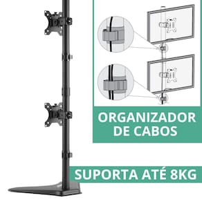 Características Técnicas: - Ajuste de Altura: 89cm - Carga Max(KG): até 8kg - Cor: Preto - Fabricação: Aço carbono - Giro Horizontal: 360° (posição retrato/paisagem) - Ajuste de Nível: +/-90° (esquerda / direita) - Inclinação Vertical: +45° / -45° (para baixo ou para cima) - Padrão VESA: 75x75mm e 100x100mm - Pintura: Epóxi Eletrostática - Polegadas: 15" a 32" - Tipo: Articulado - Tipo TV: LED / LCD - Tratamento Superficial: Anticorrosão