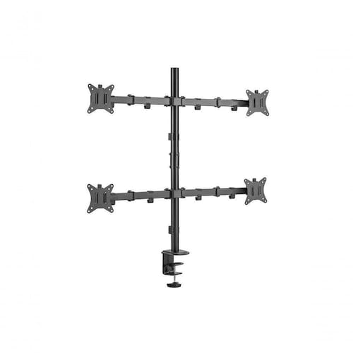 DESCRIÇÃO Com uma estrutura de aço durável, este suporte oferece estabilidade para quatro monitores de 17 a 32 de até 9kg por tela. Design flexível para amplo ajuste e ângulos de visão, ajustáveis para orientação retrato ou paisagem. Opções de montagem com ilhós e braçadeiras incluídas para instalação em quase todas as superfícies de trabalho. Uma placa VESA removível para instalação fácil. Clipes de cabo incluídos para um local de trabalho organizado e sem bagunça. CARACTERÍSTICAS - Design de inclinação livre: facilita o ajuste para frente ou para trás para melhor visualização e brilho reduzido| - Braços giratórios: oferecem máxima flexibilidade de visualização| - Ajuste de altura preciso: permite o alinhamento preciso de várias telas| - Orientação Retrato e Paisagem: atende a diferentes necessidades de visualização| - Ajuste livre de altura: para uma posição ergonômica ideal| - Design de placa VESA removível: permite fácil instalação| - Duas opções de montagem: braçadeira de mesa e anel isolante estão incluídos| - Clipe de cabo: direciona os cabos para reduzir a bagunça, proporcionando uma aparência limpa e um local mais organizado ESPECIFICAÇÕES Material: Aço, plástico Acabamento de superfície: Revestimento em Pó Cor: Preto Fosco Dimensões: 89x112x957mm Faixa de inclinação: +45~-45 Faixa giratória: +90~-90 Rotação da tela: +180~-180 Altura do poste: 803 mm VESA: 75x75,100x100 Extensão completa do braço: 376mm Instalação: Braçadeira, ilhó