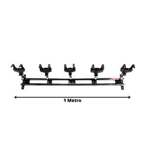 Suporte AGSB5 suporte de parede para 5 instrumentos em barra de 1m com sistema de travamento automático com o peso do instrumento. Regulagem bilateral, pintura eletrostática e tratamento antiferrugem.Regulagem BilateralASim, nos cinco suportesTravamento autmáticoSimEconomia de Espaço:Com capacidade para 5 instrumentos de cordas, o Suporte AGSB5 traz praticidade e economia de espaço para seus instrumentos.Travamento Automático:O Suporte AGSB5 possui um sistema de travamento automático com o peso do instrumento para garantir maior segurança e proteção aos seus instrumentos.