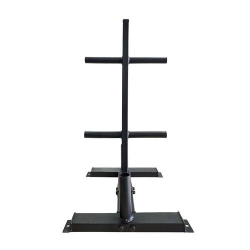 Organização e Otimização do Espaço: Mantém anilhas e barras organizadas verticalmente, liberando espaço no chão e tornando o ambiente mais seguro e profissional.