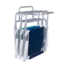 O Suporte Para Cadeiras Alumínio foi desenvolvido para auxiliar na organização e otimizar espaços. Planejado para sustentar cadeiras de maneira segura e eficiente, possui uma base resistente com capacidade para: 7 cadeiras altas, 5 cadeiras reclináveis, 5 cadeiras master ou 4 cadeiras summer. Prático e discreto, enquanto não estiver sendo utilizado, basta deixá-lo dobrado para ocupar menos espaço. Acompanha um kit de parafusos para fixar na parede. Perfeito para dispor em garagens, áreas de serviço e demais espaços da sua preferência. Além disso, o produto não enferruja e é ideal para áreas litorâneas!